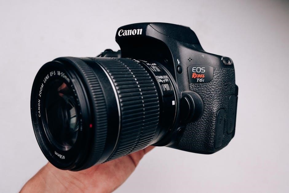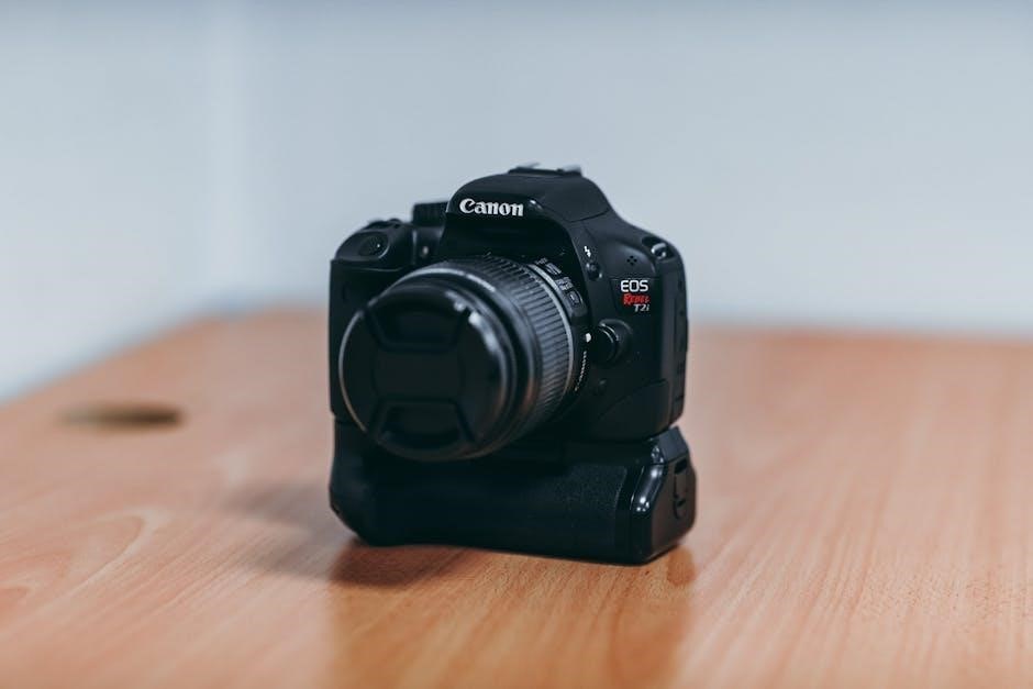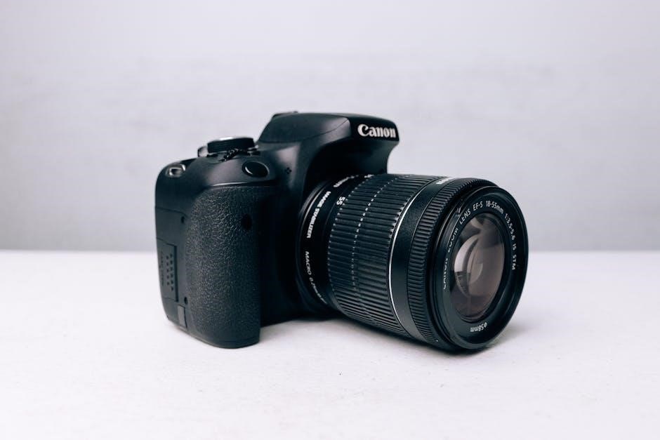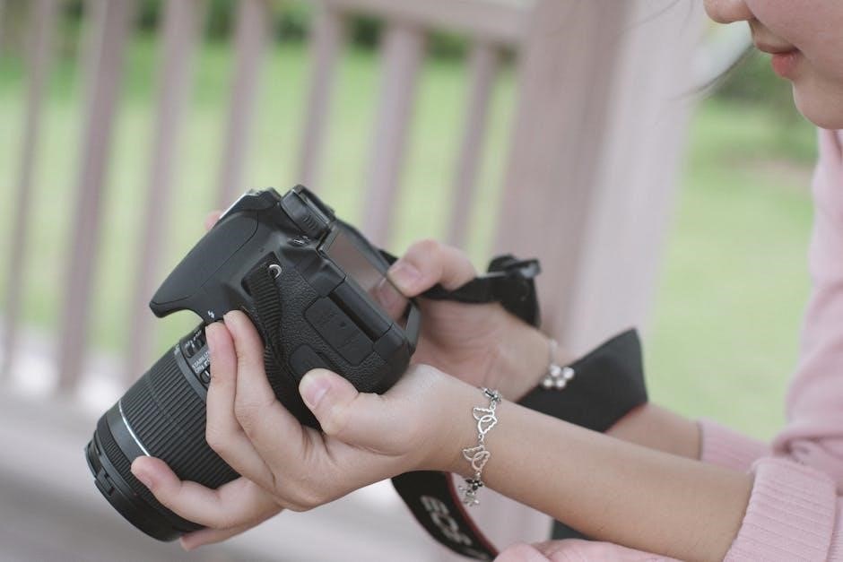 To clean the lens‚ use a soft‚ lint-free cloth and lens cleaning solution. Gently wipe in a circular motion‚ avoiding excessive pressure. For the camera body‚ a dry or slightly damp cloth is sufficient. Avoid harsh chemicals or abrasive cleaners‚ as they can damage the finish. Regularly dusting the exterior prevents buildup and maintains a pristine appearance‚ ensuring optimal image quality and camera lifespan.